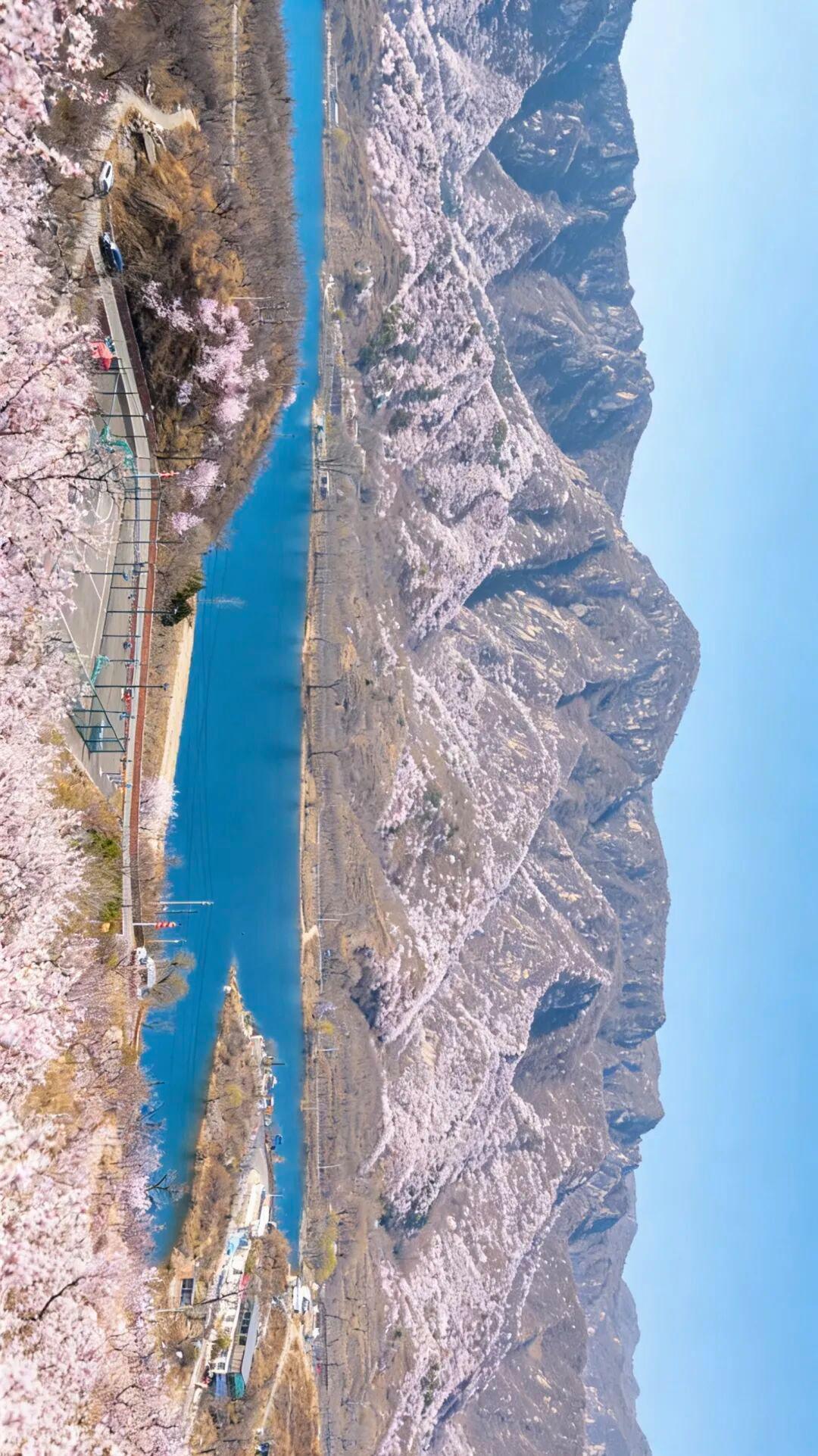 桥梓上王峪的春日景致令人沉醉,漫山遍野的桃花与杏花交织成一片粉色的云雾,将黛色的山峦晕染得如诗如画。